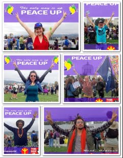 Participants are encouraged to take pictures standing in front of the Peace Up sign and to use the hashtag #peaceupworld when uploading them to a social media app of their choice. These images will join other Peace Up pictures to create an online expression of global unity and peace around the world.