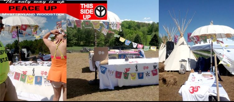 On the sacred land of Bethel Woods Center for the Arts where the original Woodstock stage was built in 1969. We participated in the Healing Garden Spiritual area. Promoting Peace Up awareness while creating a space for people to create positive experiences through art, and we performed live screen printing of Peace Up icons on their garments.